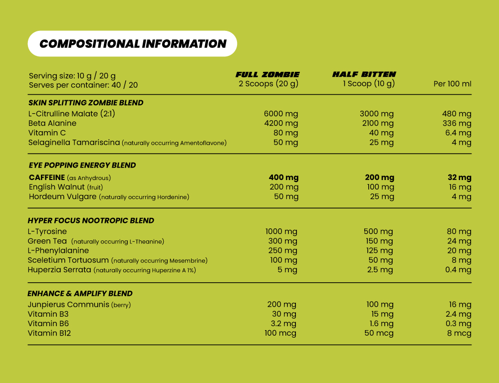 ZombieLabs Cross-Eyed Extreme Pre Workout 40 Serves Lethal Lime Fizz